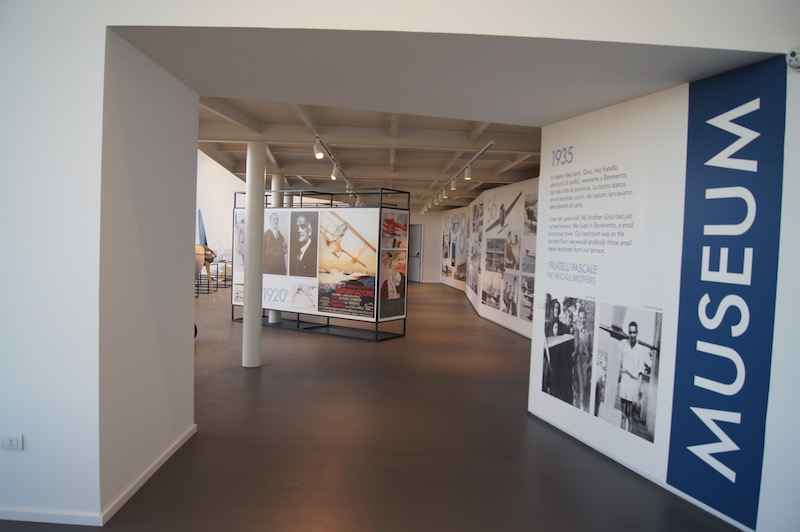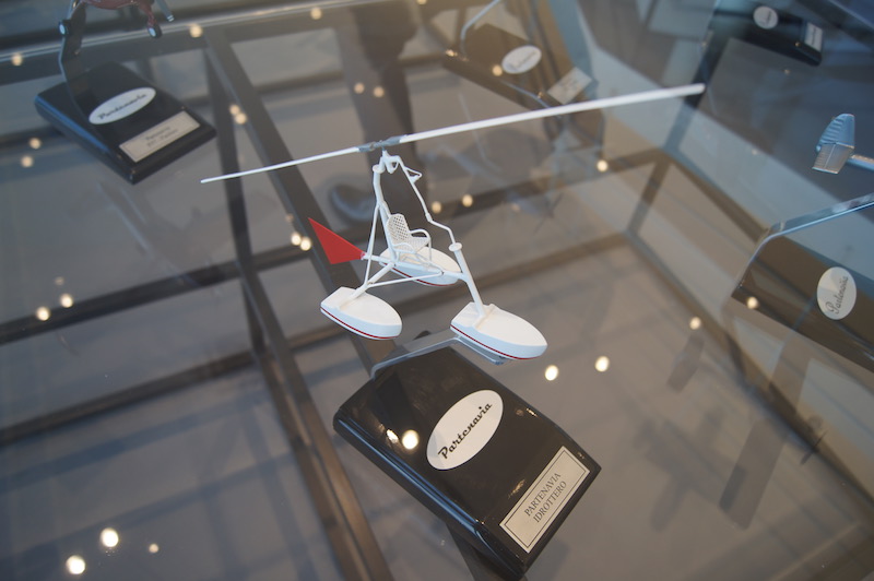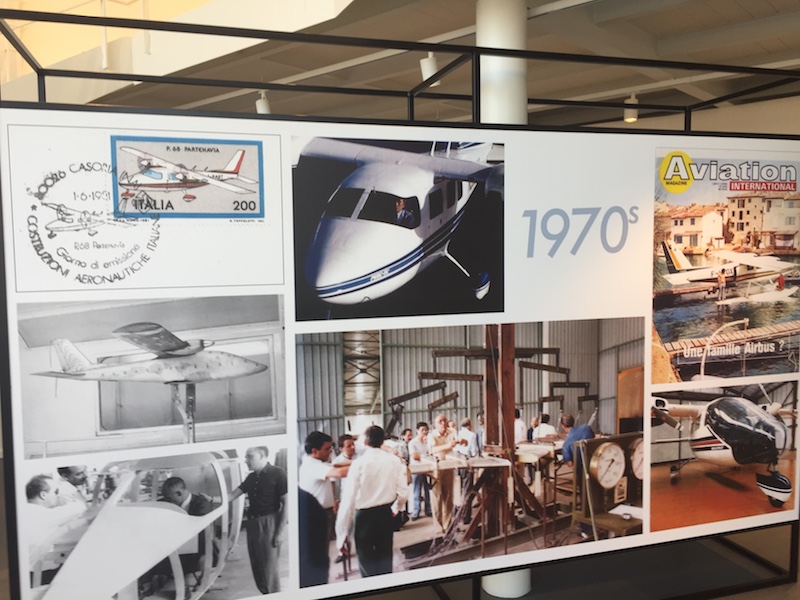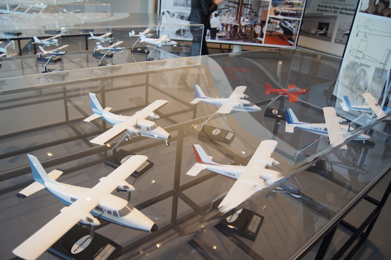 Под стеклянными витринами огромное количество моделей, выпускаемых за все время долгого (более 60-ти лет) существования Компании. Классические подкосные высокопланы, стремительные низкопланы, двухдвигательные поршневые и газотурбинные, и даже морской автожир-змей! Честно – никогда не знал, что история TECNAM насчитывает столько разработок. Вертикальные стенды с уникальными фото где запечатлены основатели с их многочисленными моделями самолетов.
