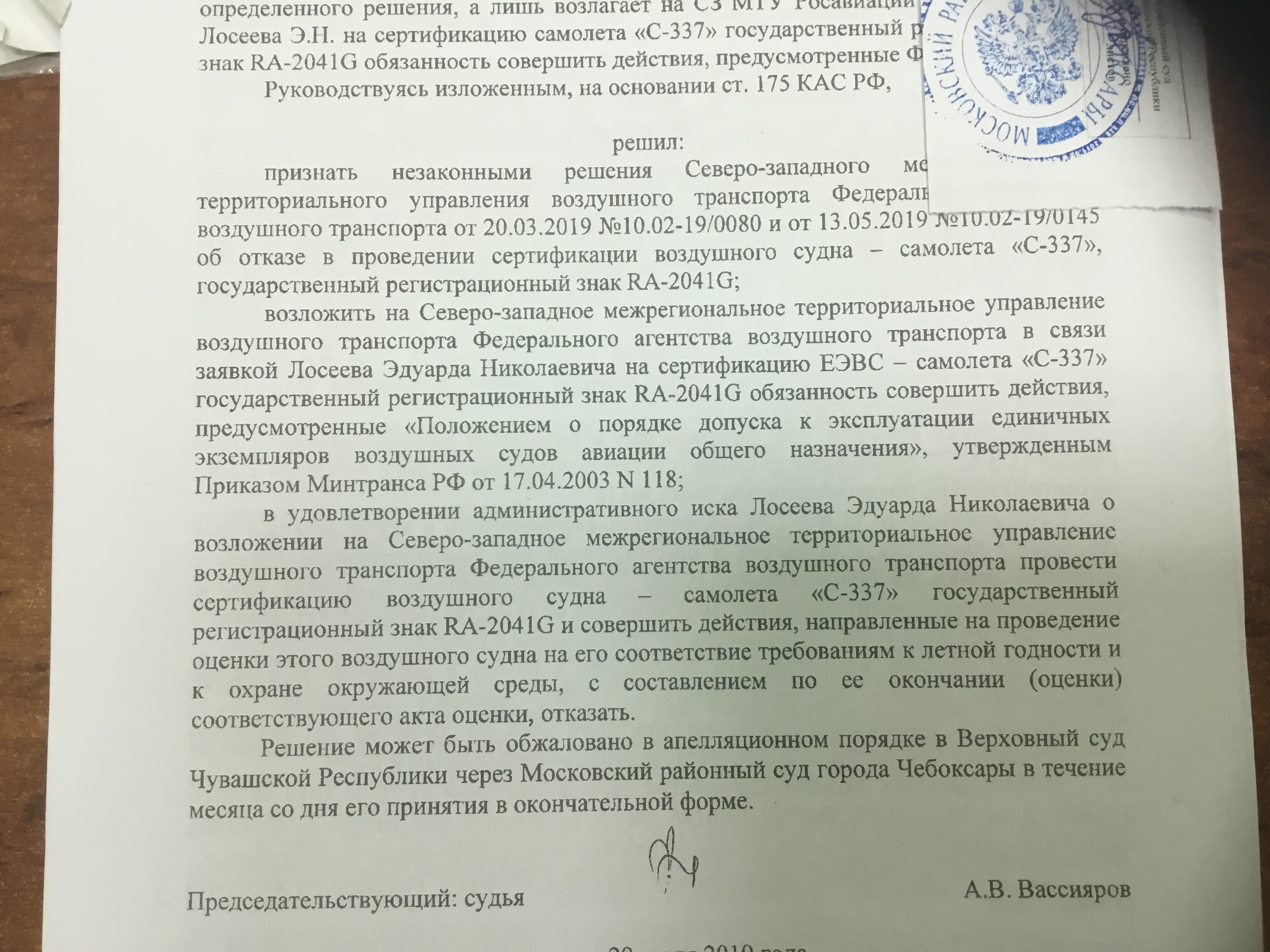 В этом вопросе несостоятельность запредельных и ни на чем не обоснованных требований РА (продление СЛГ ЕЭВС, всякие там непонятные расчеты, летчики испытатели и прочая хрень) тоже можно и нужно оспаривать.