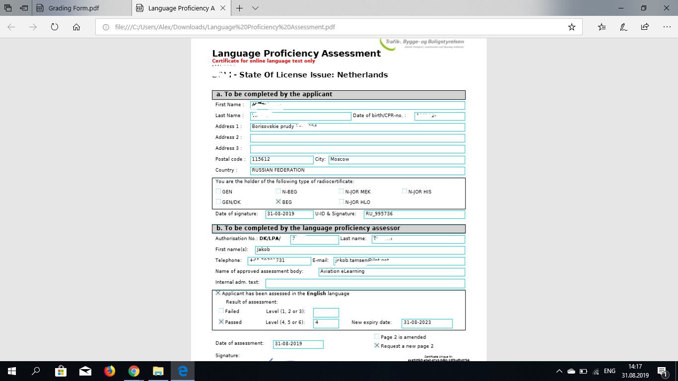 Далее сертификат на ICAO4 (делают для всей европы) - 240 евро