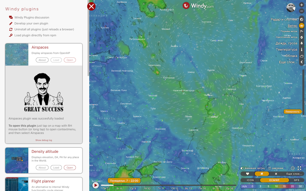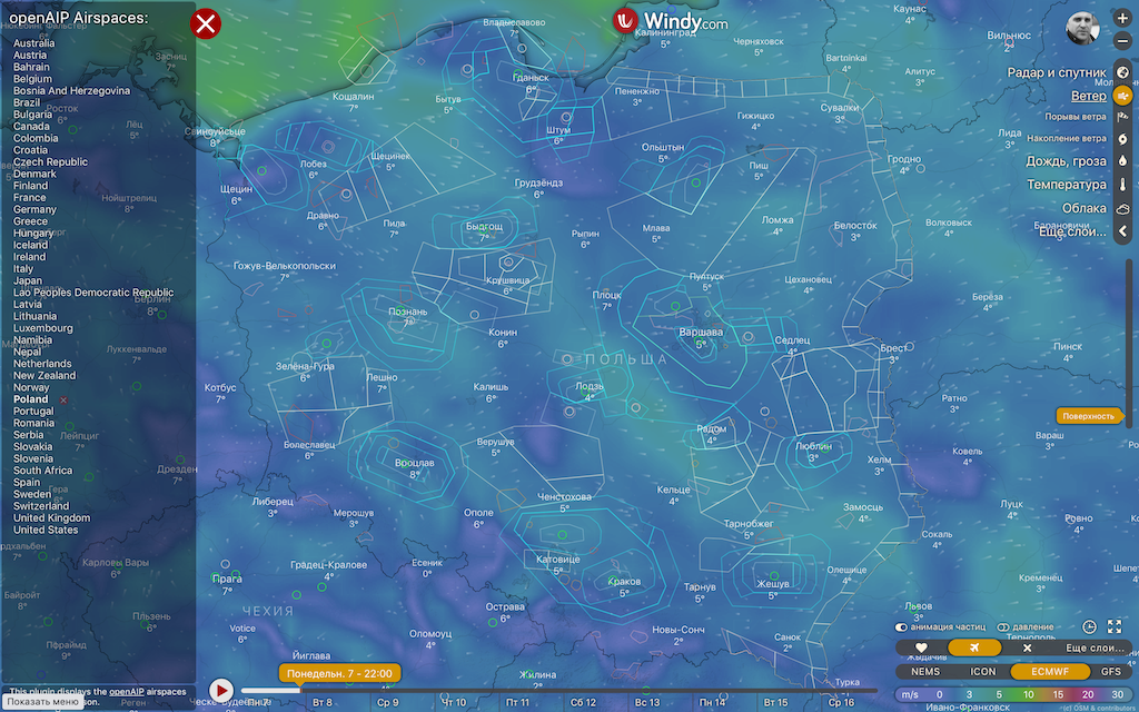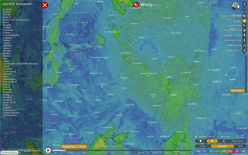 Давно хотел выделить обсуждение Windy.com в отдельную ветку, как вдруг появился хороший повод: на сервисе начали активно развиваться плагины. Один из тех, что мне понравился - структура воздушного пространства. Очень наглядно. Однако, как и всегда, для России пока такой структуры нет. Очевидно, надо сильно попросить, а потом растолкать 502-го под горку, чтобы скомпилировал некую БД и залил её на openAIP.net, откуда эти структуры "подхватываются" плагином. Я ниасилил... Времени нет, да и исходники все у АОПА...
