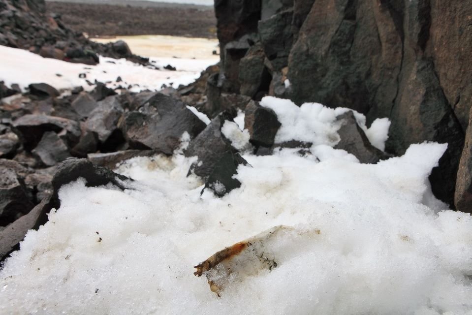 Когда вернулись из экспедиции, поначалу нам не особенно верили, что листок буквально лежал на поверхности, в снегу, среди базальтовых глыб.