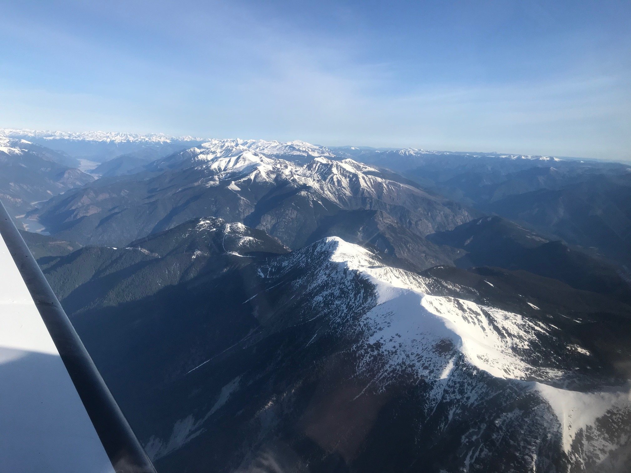 Дорога из CYPK в CYYE через канадские горы Rocky Mountains. Летели на высотах 10500-13500 фут и использовали кислород.