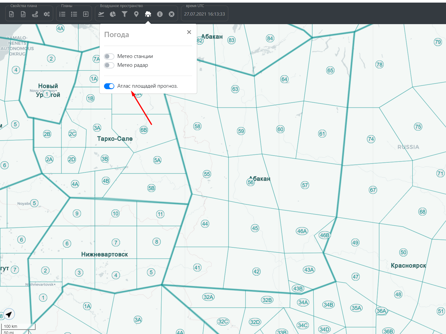 Технически возможно добавить слой с указанием районов прогнозирования и площадей. Получить сами прогнозы пока не невозможно, из за политики ФГБУ "Авиаметтелеком Росгидромета" .