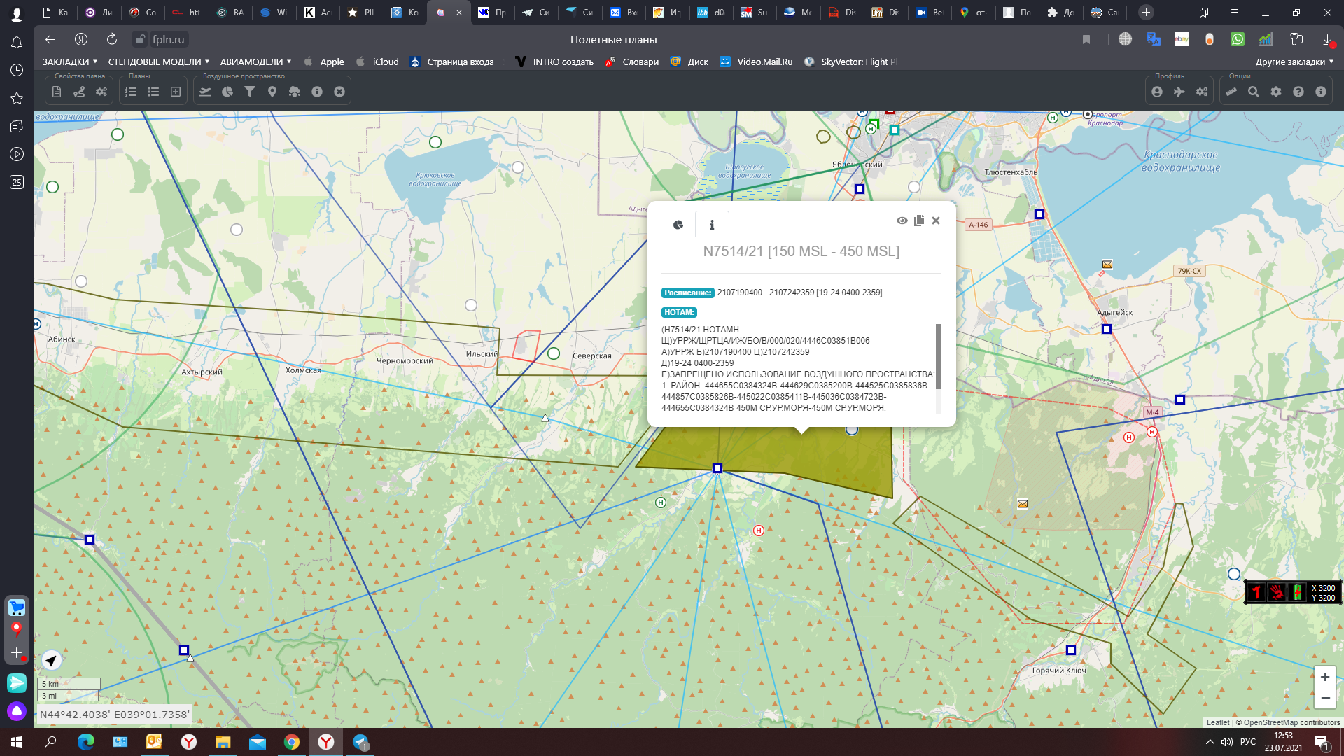 У меня этой информации просто нет. Есть только текст НОТАМ. Иногда в тексте нотам, пишут номер режима, чаше нет.Sergey Kondratiev писал(а): ↑23 июл 2021, 13:03 ...возможно ли отображение номеров режимов (МР, ВР) на зонах соответствующих НОТАМ? ...
