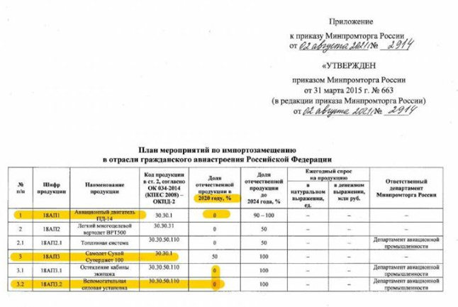 Из неё следует, что что в авиационном двигателе ПД-14 по состоянию на 2020 год доля отечественной продукции составляла всего ноль (0) процентов (!) и только к 2024 году планируется ее довести до 90-100%.