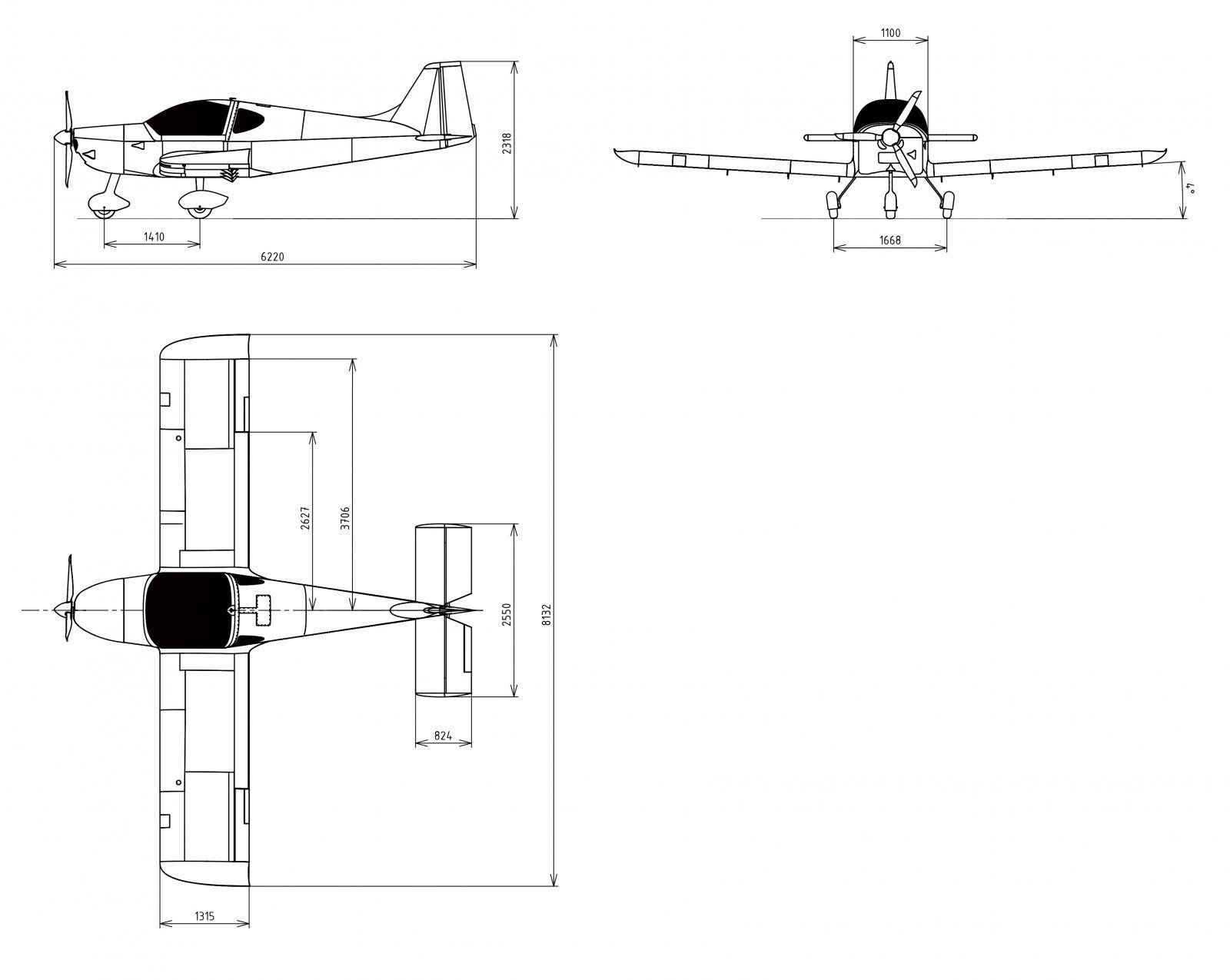 Размах крыла - 8,20 м