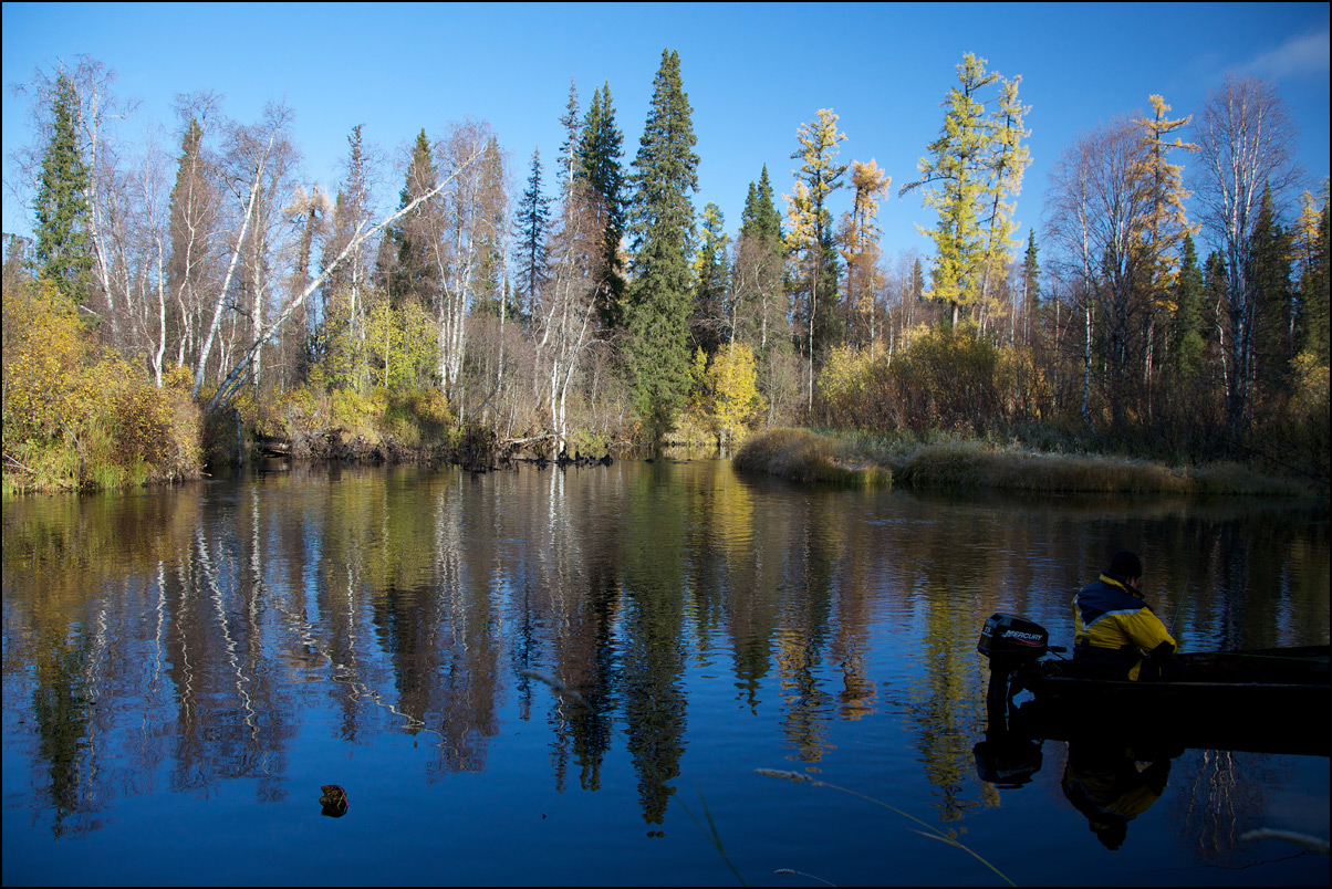 Пока что можно добраться на вертолете и на гидросамолете. Для гидроавиации два ближайших естественных гидродрома - озеро (на фотографии) и река, местами вполне прямая.. Но на реке течение все же приличное.. От озера до места - 30 минут пешком или час на квадроцикле.