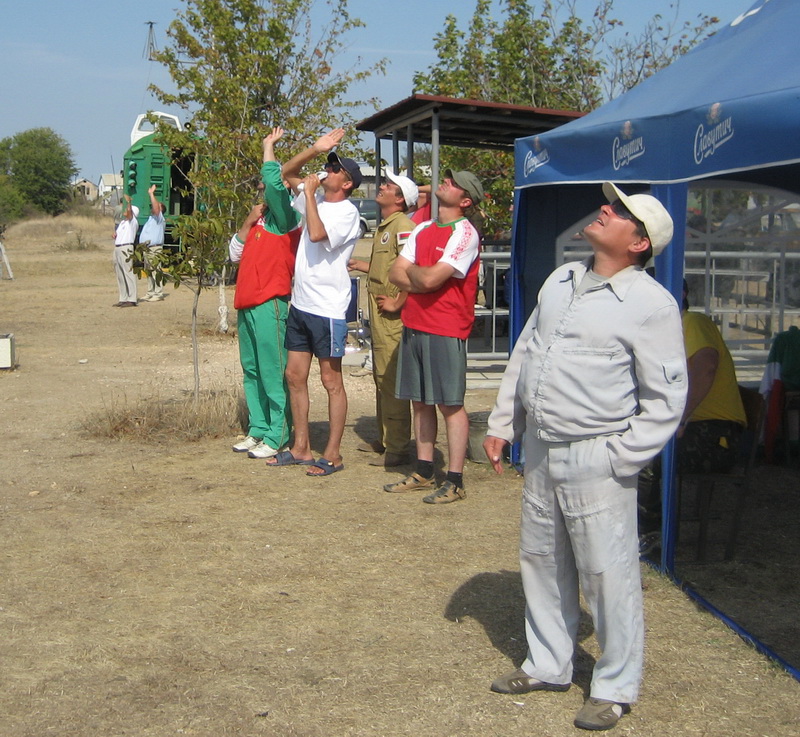 Соревнования начались. Все смотрят в небо: