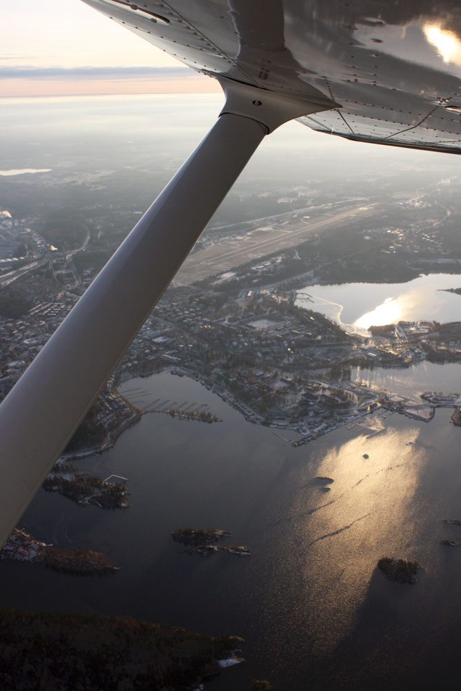 В течение часа ожидали приезда таможни и пограничников Республики Финляндия. Парни они разговорчивые, но почему-то только на финском. Английскому обучены, но просто так его не растрачивают, короче, характер нордический. В итоге таможня и поргранцы позади - прыгаем в самолет и взлетаем. До нас с полосы взлетает местный АОНовский самолет, без радиосвязи. В РФ - считай преступление, в Финляндии (и во всей Европе) - нормальная практика визуальных полетов с аэродрома в пр-ве G.