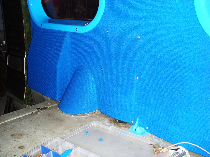 сложности были, кавролин пришлось сшивать кусками в местах округлых , а потом только приклеевать на панель.