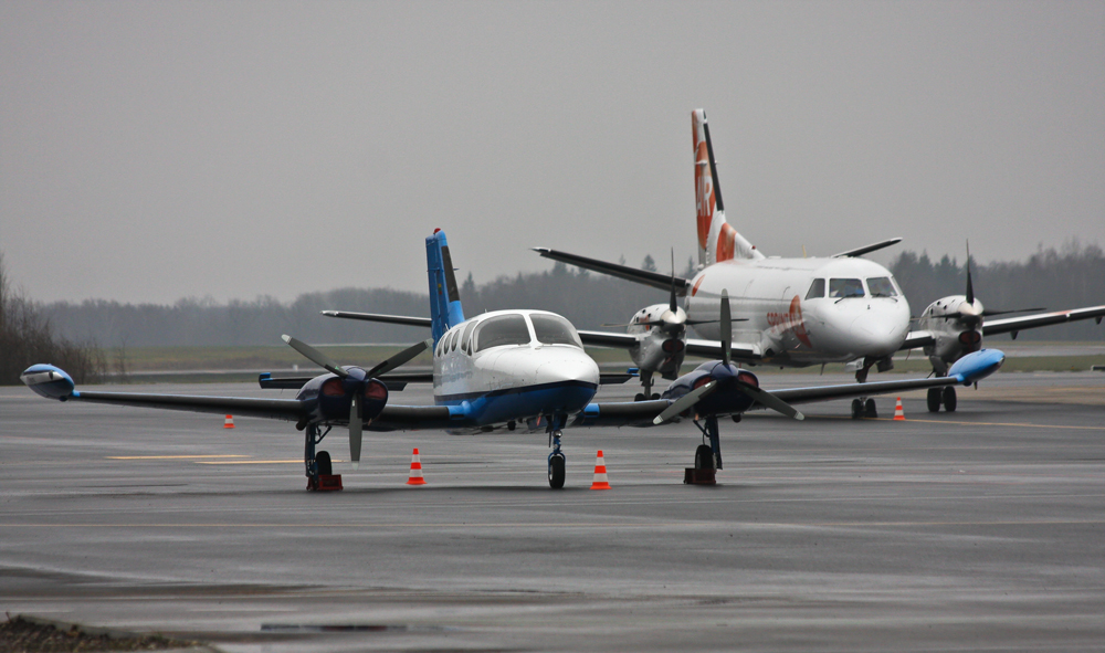 Где-то с самого боку, на скромной парковке, стоит видимо самый дорогой самолет на аэродроме Каунаса - pilatus