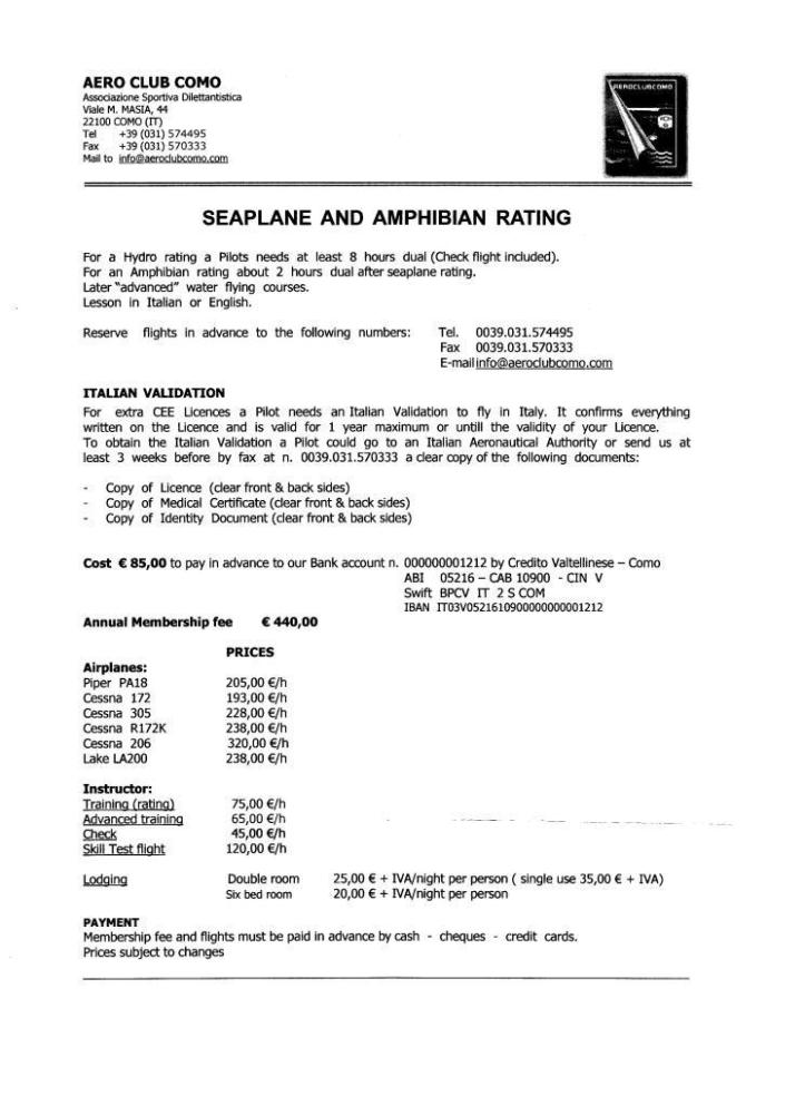 Re: JAR seaplane rating - озеро Комо, Италия.