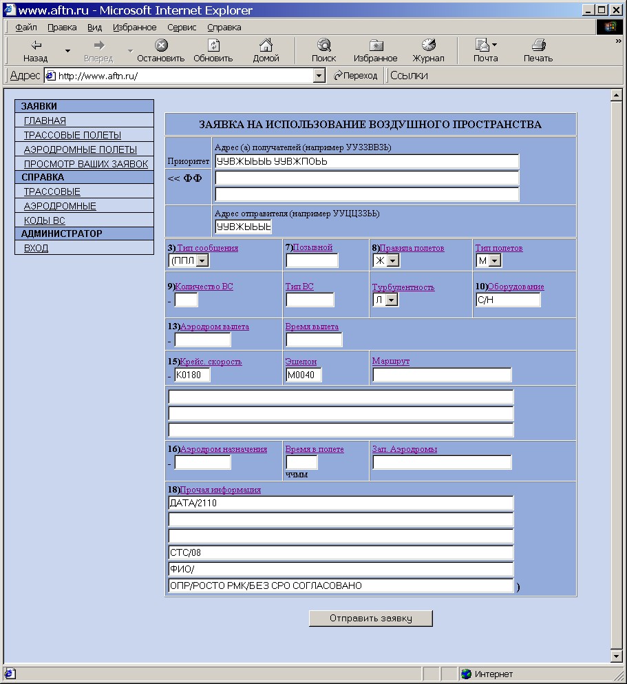 Подача заявок на полеты Авиации Общего Назначения ... подробности на сайте: http://www.aftn.ru/