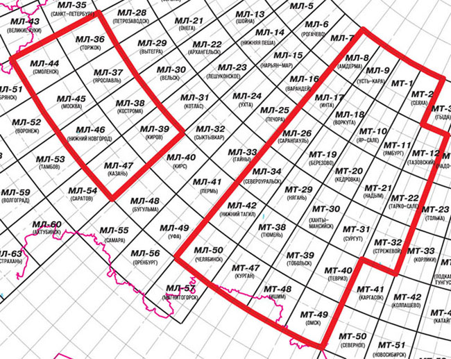 Схему расположения листов РНК-МВЛ и подробности о продукции выпускаемой Федеральным Государственным унитарным предприятием "Центром аэронавигационной информации" можно посмотреть на официальном сайте http://www.caica.ru
