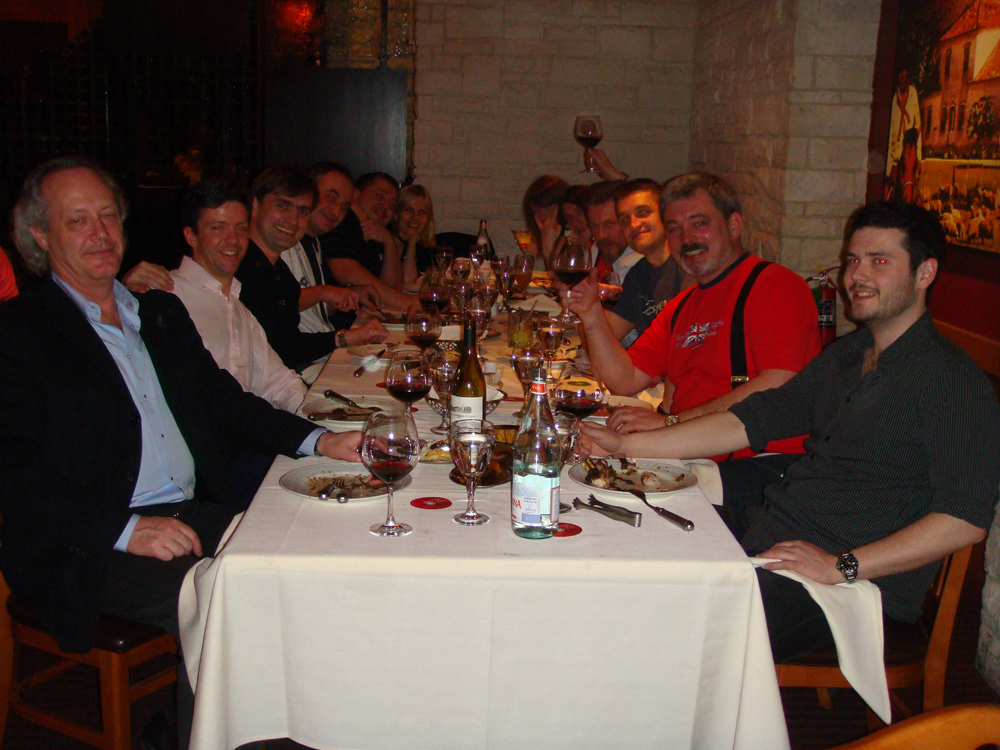 Мое посещение выставки началось с встречи с LT.AK AKA Андрей в гостинице и с вечеринки Robinson в отеле рядом с выставкой. Вечеринка эта плавно переместилась в бразильский мясной ресторан, обнаруженный Андрюшей в дебрях Хьюстона. С нами были еще французские вертолетчики и Кью Смит... На самой выставке было встречено немало хороших и добрых людей. Например, Alexander E - Cessna, устроивший мне ахренительный тест-полет на Белл-429! Об этом, конечно, надо писать отдельную песню (о широте Сашиной души, не о вертолете). Он, правда, хотел сорвать мой полет, наливая мне виски накануне в ночи - но у него не получилось