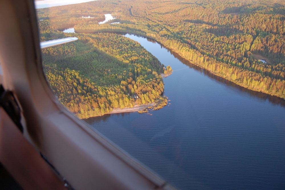 Долетев до площадки мы выполнили проход, развернулись и сели. Деревья и кусты по торцам мешали посадке, в багажнике их дожидалась бензопила. Времени было мало но комары нас подгоняли. Подъехавшие аборигены отнеслись к нам хорошо, обещали содействие тем кто пожелает (по предварительной записи) остаться на ночь. Отличное место, но фумигаторами надо запастись.