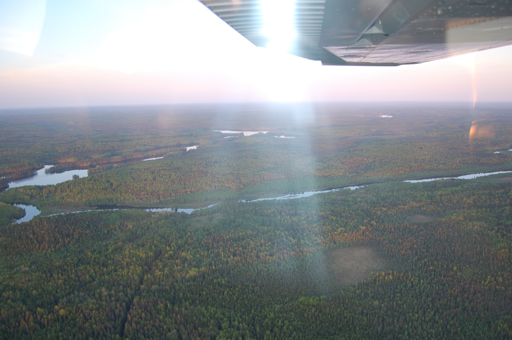 Долетев до площадки мы выполнили проход, развернулись и сели. Деревья и кусты по торцам мешали посадке, в багажнике их дожидалась бензопила. Времени было мало но комары нас подгоняли. Подъехавшие аборигены отнеслись к нам хорошо, обещали содействие тем кто пожелает (по предварительной записи) остаться на ночь. Отличное место, но фумигаторами надо запастись.