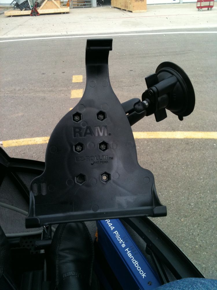Штатное крепление - на ручку циклического шага. Гармин сильно ее утяжеляет и, кроме того, неудобно расположен. Еще у меня есть дощечка на коленку - этот вариант лучше, чем на ручку. Но самое удобное - присоска (крепи куда хочешь), держит нормально (сегодня еще летал).