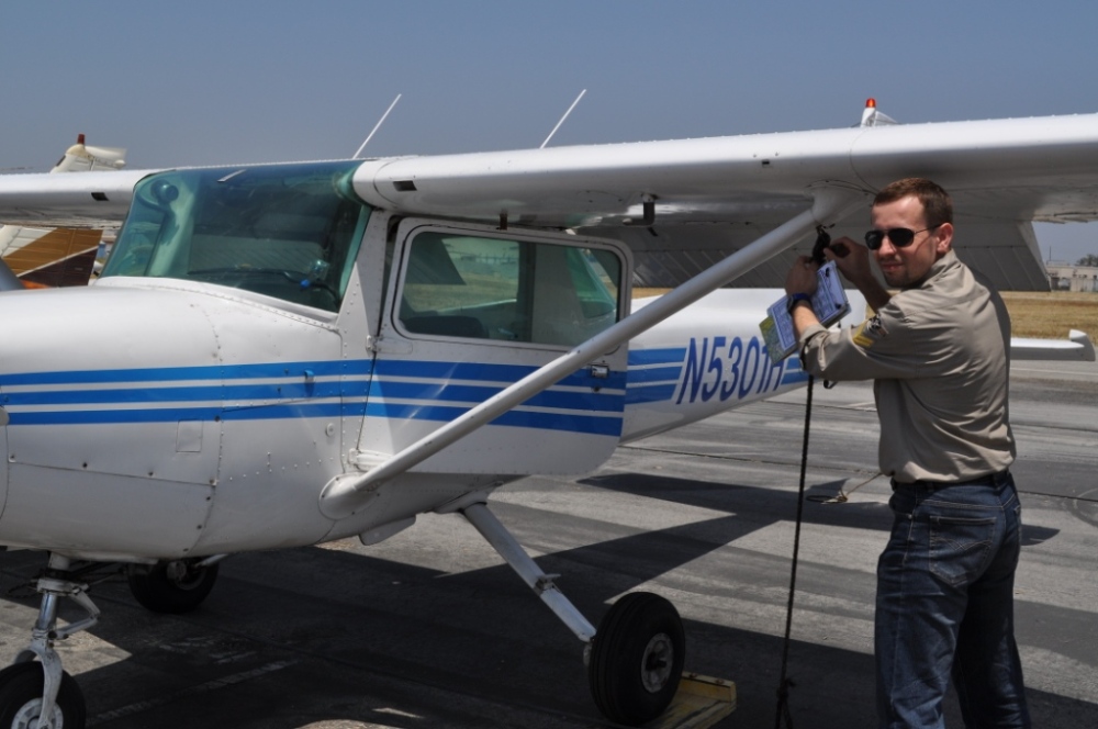 После обеда надо быть в аэропорту Лос-Анжелеса - начинается работа. Пакуемся с шефом и выдвигаемся к аэродрому. Погоды нет, но надежда теплится, что до обеда прояснится. Ричард говорит, что шансов мало, но по TAF вижу, что дают погоду где-то с 1200. Так и есть - пробивается солнце и небо становится ясным. Предлагаю начальнику полетать со мной по кругам - он немного переживает, но от приглашения не отказывается. Беру документы и идем готовить самолет. Обнаруживаю, что его уже кто-то заправил под пробки (потом я узнал, что у клуба договор