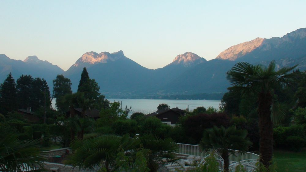 А это для Тани - вид с моего балкона на летнее озеро Анси. Рассвет... Потом еще картинок повешу - надо их из камеры слить