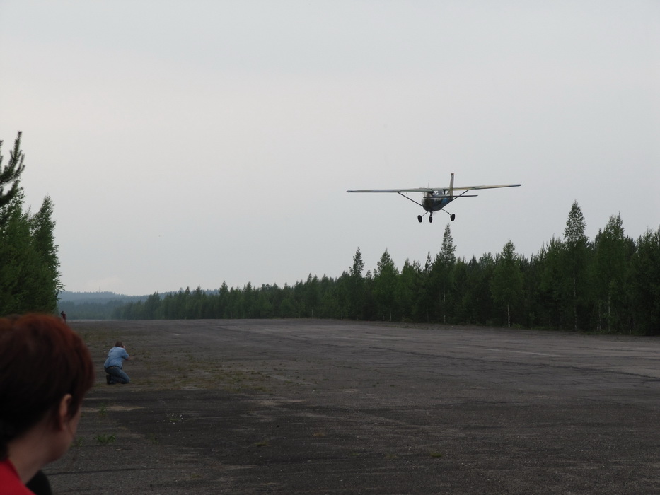 Гирвас, похож на Троцу, которая на Нижегородском море. Похожая полоса, то же вдоль воды и в колодце из деревьев. На полосе масса народу, встречающие, телевизионщики, туристы, просто ... прохожие, точнее проезжие. Казалось что прилетим в суровый таежный край, где не ступала нога человека... ан нет оказалось что в карелии туристов больше чем деревьев, и при желании уединиться надо пристально осматриваться даже в лесу...
