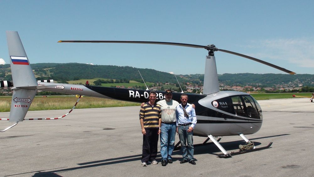 высота 9,000 футов А это мы подсели в Куршавель (если приглядеться - на флаге именно это и написано) На следующий день ко мне прилетал Сережа Чернов, мой ко-пилот на обратный путь. Мы договорились, что он прилетит в Женеву и на таксомоторе приедет в Анси - откуда мы стартанем в швейцарский Гренхен. Там был последний день Открытого чемпионата Швейцарии по вертолетному спорту - и четыре наших экипажа.