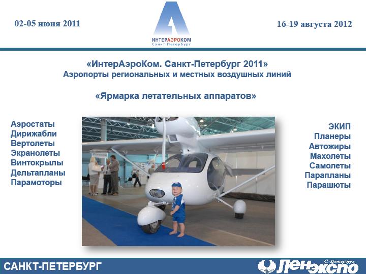 В пресс-релизе было объявлено, что в рамках мероприятия пройдут выставка «Аэропорты региональных и местных воздушных линий» и выставка-продажа «Ярмарка летательных аппаратов».