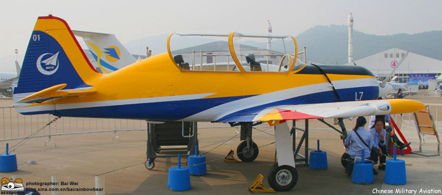 Точнее это Китайский вариант нашего Як-152 (с-т с передним колесом шасси). Обещают поднять в первый полет в декабре (у нас этот Як-152 тоже ни разу ещё не летал). Фото с выставки в Чжухае 2010 г.