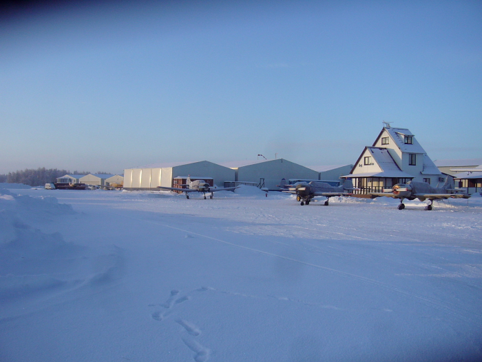 Екатерина встретила меня и несмотря на мороз :!: устроила настоящую экскурсию по аэродрому. Огромная ей благодарность! Мы прошли по рулежкам - под яркой луной была отлично видна бетонная и грунтовая ВПП. Посмотрели на большие и малые самолеты, Катерина рассказала и про них и про основные организации на аэродроме. Видно что здесь работают настоящие энтузиасты!