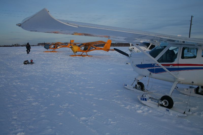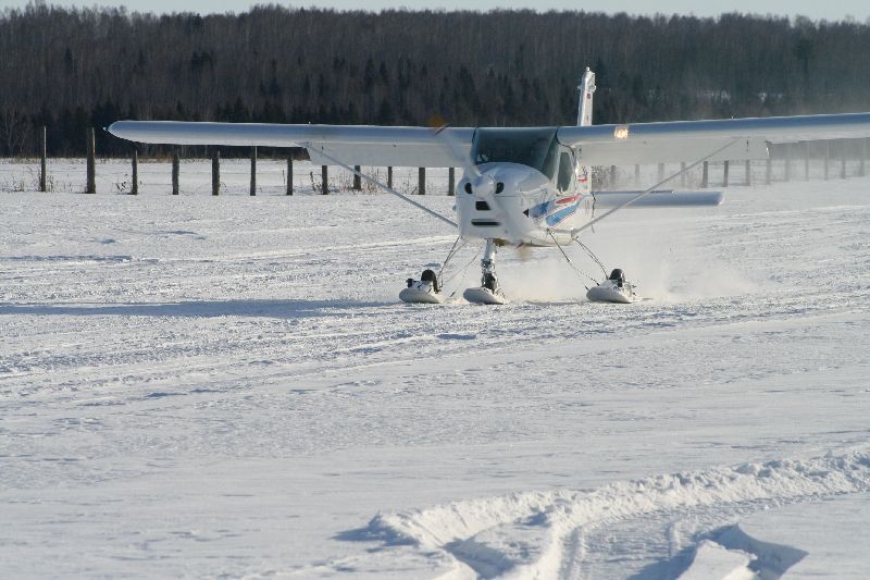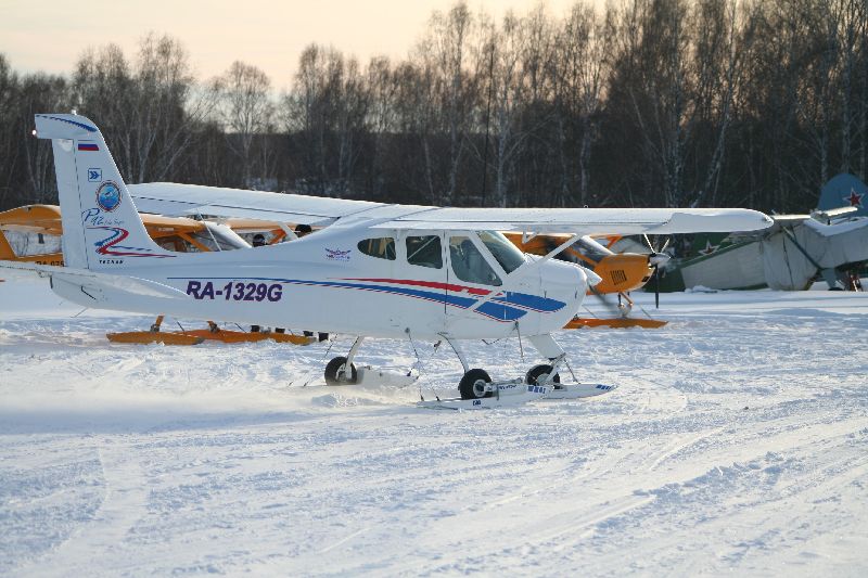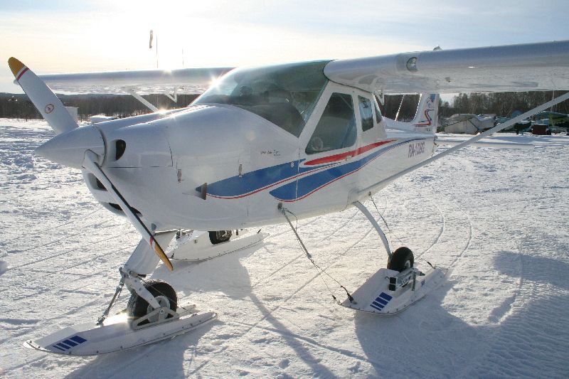Установили и облетали на "Эхе" лыжи канадской фирмы DATUM. Лыжи с электроприводом, позволяющим выпускать и убирать колеса в полете, или на земле-заехать в ангар, подсесть на малоснежную ВПП. Впечатления очень хорошие. Качество лыж-супер! При разбеге и рулении впечатление, что самолет летит над ВПП... Летали целый день в кайф. Посадка на целину-реально. Следующая будет "Сиерра". Ибо в Сибири без лыж никуда.