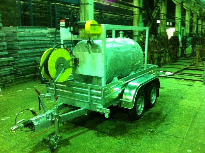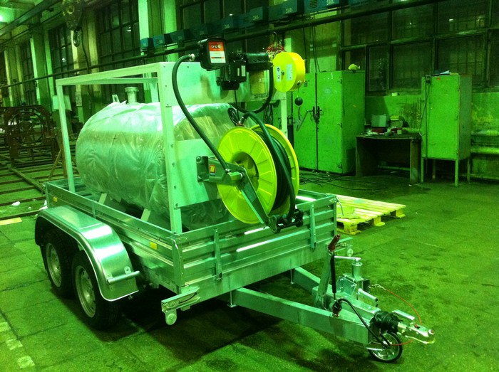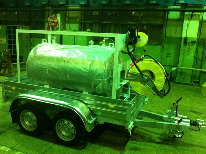 Bars, подскажите, пожалуйста, производителя катушки для рукава, установленной на данном прицепе.