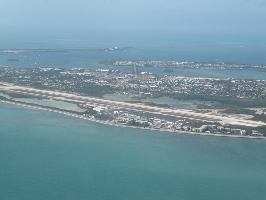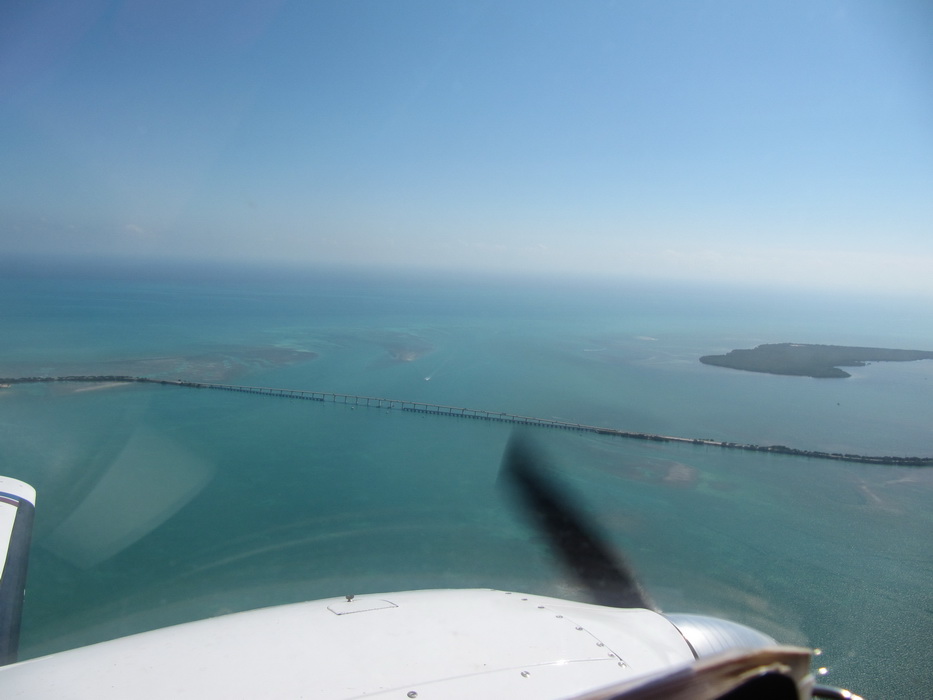 Удивительно красивое место. Практически все новоиспеченные летчики, как только получают возможность летать по маршруту, сразу устремляются на Ки-Вест. Целая цепь островов соединенная между собой огромными мостами, выглядела с высоты как огромные бусы. На этих мостах снялся не один фильм.... Мы снизились метров до 300. Все прилипли к стеклам и рассматривали все что было под нами, катера , гидроциклы вырисовывающие узоры на воде, взлетающие гидросамолеты, машины на мосту... Внизу кипела жизнь. И вот показалась конечная точка нашего путешествия , мы запросили Ки Вест и вошли в круг.