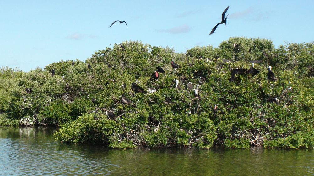 Колония фрегатов (птица такая). В полете очень похожи на птеродактилей