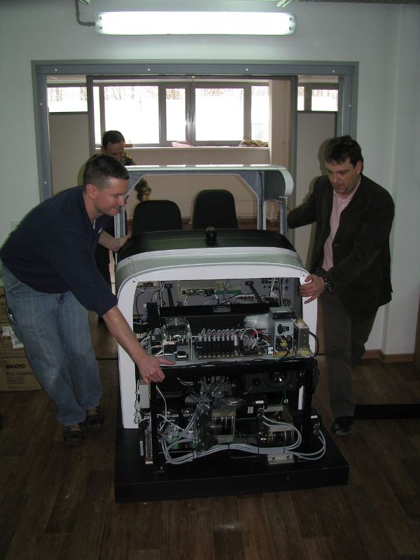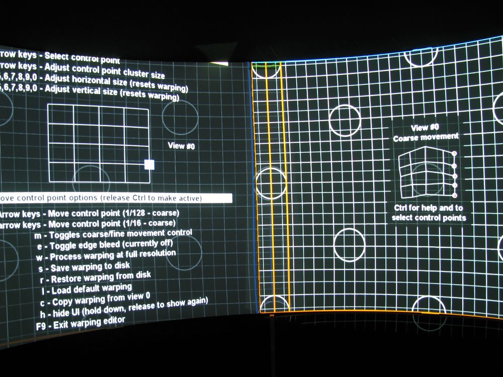 Погружению в виртуальную реальность помогают 3 проектора, которые необходимо точно настроить, что-бы картинка была единым целым, а не кусками разных изображений. На этот этап мы сегодня потратили почти 10 часов.