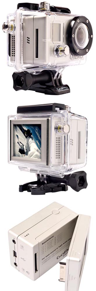 Уже не так. Совсем недавно (новинка) производитель выпустил для GoPro Hero пристёгивающийся дисплей-видоискатель LCD BacPac. Он продается в комплекте с дополнительными (увеличенными) задними крышками, что позволяет сохранить "целостность" камеры и герметичность (при необходимости). Теперь GoPro Hero стала полностью самодостаточной видеокамерой для экстремальной/спортивной съемки.zenon писал(а):Что касается видоискателя, его нет ни в одной экстрим-камере. ... В GoPro Hero его тоже нет - надо ориентироваться только по квадратному корпусу камеры, а что является для кадра центром можно только догадываться. Впрочем, не промахнуться немного помогает широкий угол камеры.