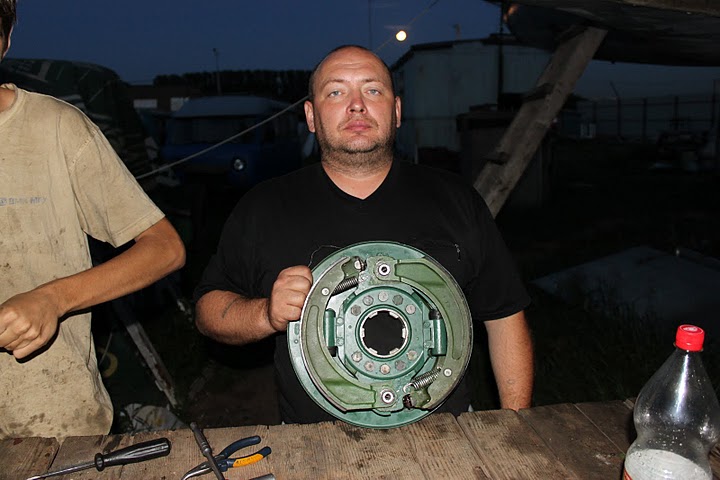 В это время Олег занимался обслуживанием и сборкой тормозных колодок и барабанов одного из колес основного шасси