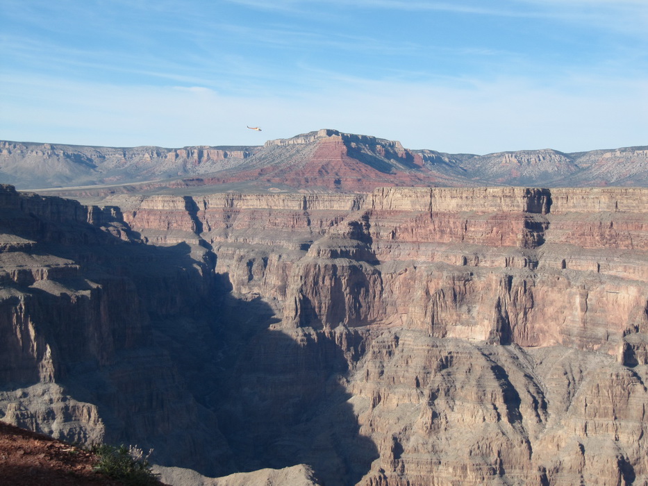 Вид каньена описать нельзя, его надо просто видеть! Это безумная картина, по масштабу и по грандиозности! Не верится что это все сделано природой, и вообще не верится что такое может быть… Наверное час мы бродили и смотрели на всю эту красоту, потом купили мороженое в местном ларьке, сели на один из уступов на краю каньена и почти в полном молчании и одиночестве просидели еще пол часа. Туристов практически не было, наверное потому, что время было уже после обеденное и основная масса любопытствующих, уже вернулась в Лас Вегас и делилась впечатлениями с соплеменниками. Когда эмоции слегка поутихли, мы сели на автобус и поехали к следующей точке. Побродив какое-то время на новом месте, мы стали торопится на аэродром. Надо было успеть до захода солнца посетить еще одно место, а времени оставалось в обрез.