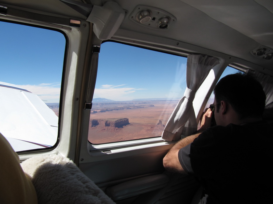 Еще накануне вечером, мы поинтересовались стоимостью топлива, услышав цену 4,95 за галлон, мы были удовлетворены. Когда мы были уже у самолета, к нам подошел мужиченка с внешностью рязанского пастуха и спросил , будем ли мы заправляться? Дима задал сакраментальный вопрос: Хау мач? Мужиченка невозмутимо ответил 5.00/галлон. Не в наших правилах было уступать 5 центов. Дима намекнул, что вчера нам озвучивали стоимость в 4,95 и обещали скидку от обьема. И вот тут мужичек сделал не правильный ход, он ведь не знал, что мы из России и не раз бывали в Турции, он спросил: А сколько вы будите брать? И тут как говориться,- Остапа понесло! Дима почувствовав слабину начал торговаться с усердием и упорством египетского продавца кальянов. Каждый цент, давался с боем. Мужиченка явно отступал, он вероятно не ожидал такой агрессии, а четкого прейскуранта видимо на аэродроме не было. За ходом дебатов было тем более интересно наблюдать, учитывая, что у Димы в словарном запасе кроме «хау мач» было только ес и ноу… В итоге мы вроде заправились за 4,80. Мужиченка вытирая пот со лба заливал нам полные баки. На сегодня задача была прозаично проcта,- пролететь по направлению к Bryce Canyon далее к Monument Valley потом пересечь 9000-ный хребет в районе Albuquerkue, выйти в долину и максимально долго пролететь…