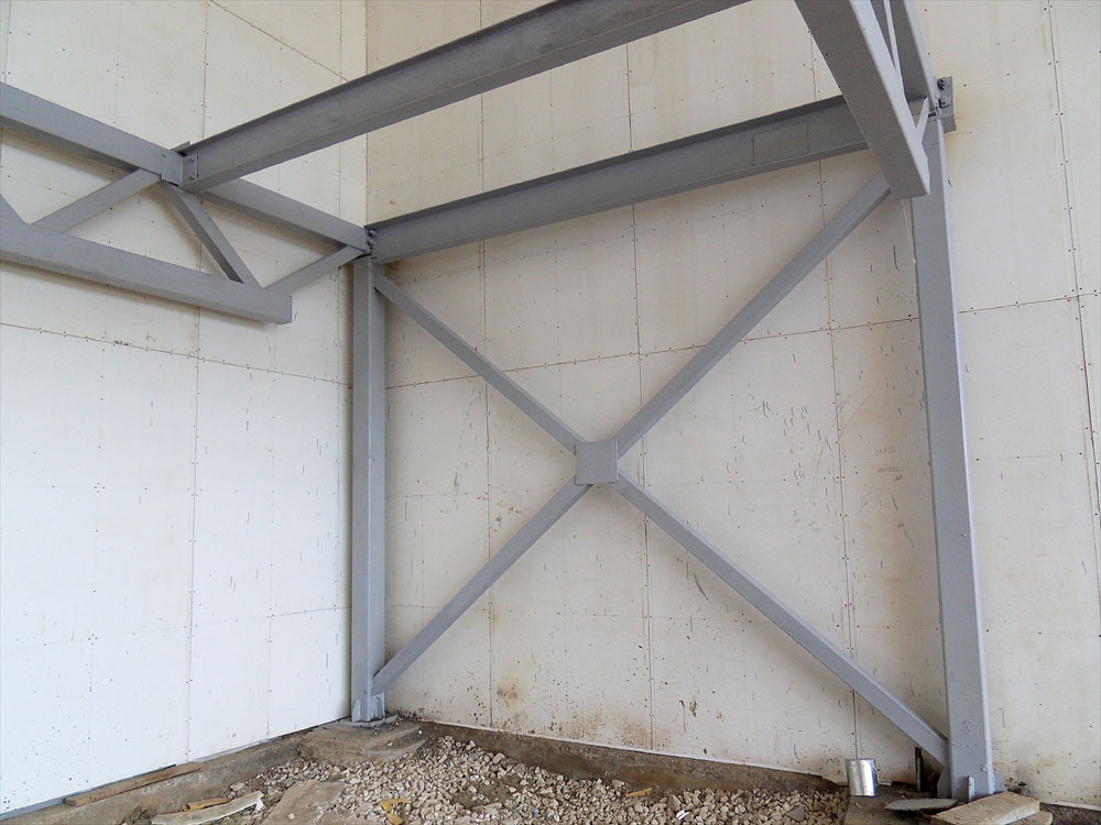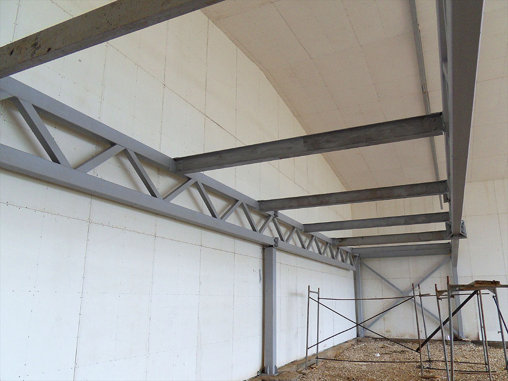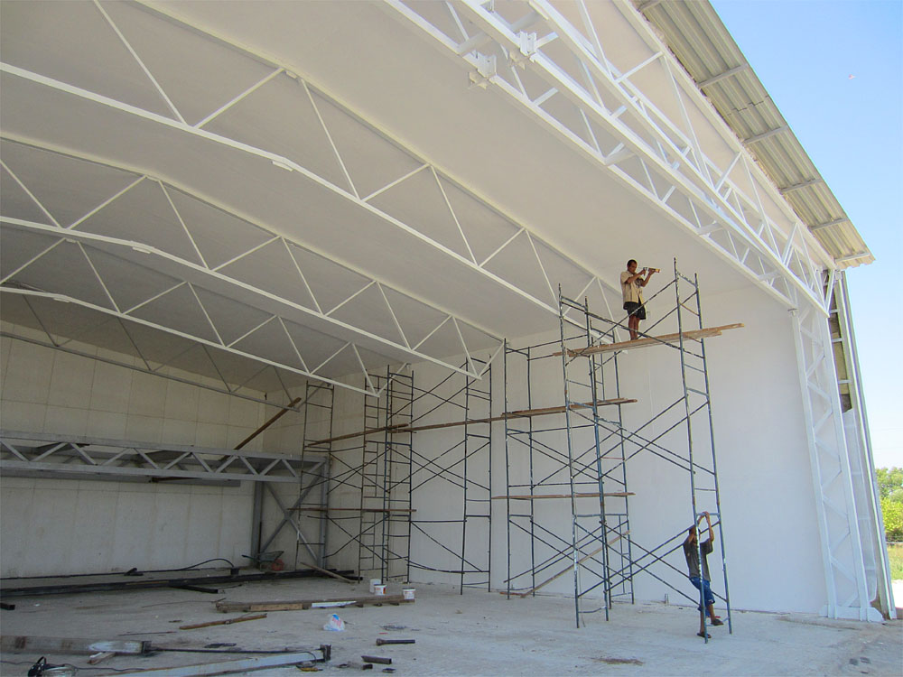 К этому времени завершена подготовка стен к малярным работам. А затем все стены, за исключением антресольной части, (там будут еще вестись работы) приведены в порядок и покрашены. То же самое с фермами. Покрашенное в беленькое, всё стало выглядеть намного аккуратнее и чище. Да и света потребуется куда меньше, чтобы хорошо осветить внутренность ангара.