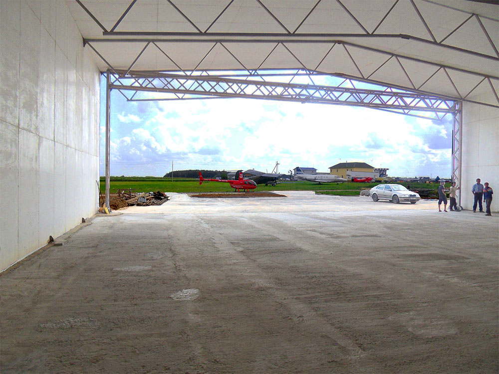 Поразмышляв, я отказался от идеи делать термоизоляцию пола. Есть такая технология - лить бетон по слоям пенопласта и пенофола. Пол, конечно, будет теплее, но ведь авиационный ангар - это не жилое помещение. Здесь не нужно постоянные +25*С зимой. Надо поддерживать просто комфортную плюсовую температуру. К тому же, термоизоляционная стяжка это и солидные затраты, и сдвижка запланированных сроков строительства.