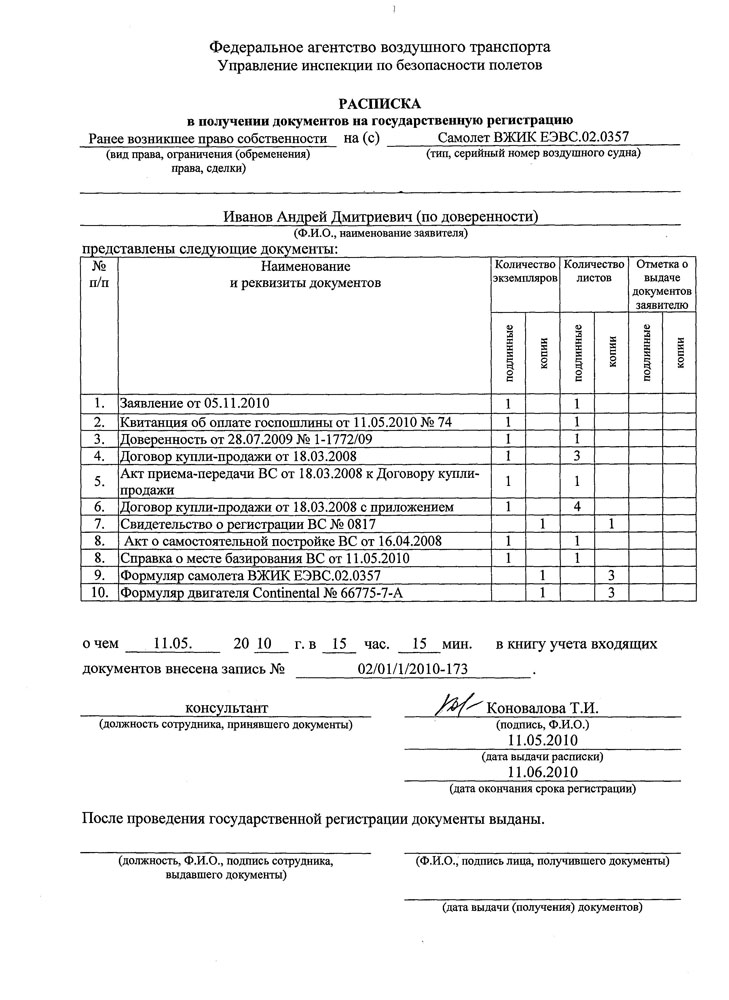 Сегодня сдал документы на регистрацию права собственности на "ВЖИК" RA-1032G.