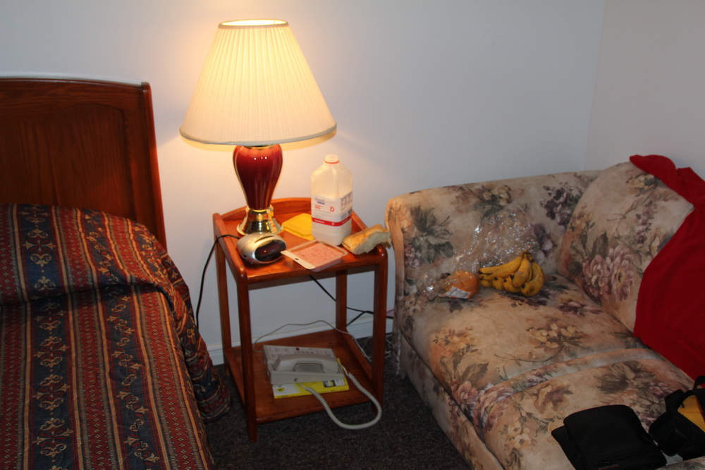 Я зашел в номер. Не скажу что там было тепло. На стене висел обогреватель, но включить его не получилось, регулятор был сломан и обогреватель мог работать только в режиме вентилятора, только этого мне еще и не хватало. Я снял обувь и одел сухие носки, стало лучше. Номер был аскетичен, в холодильнике и на нем было много еды, консервы, напитки , галеты. Все говорило о том, что здесь отстанавливаются явно не туристы...