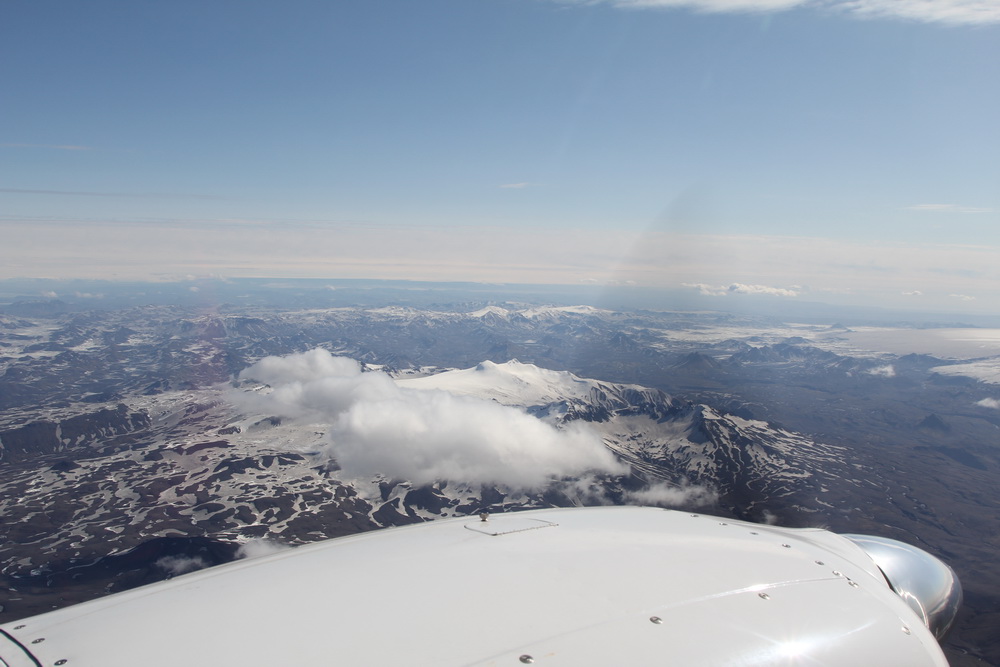 Цессна как раз зашла на посадку. Я сделал пару кадров аэродрома и приготовился глазеть по сторонам. Диспетчер предложил занять 13000, ага , с полной загрузкой... Это вряд ли , по крайней мере будем карабкаться оооочень долго. 11000-12000 самолет еще набирает но выше? После 10500 он еле ползет вверх. Только успев набрать высоту , му подошли к леднику. Светило солнышко, настроение отличное, облаков нет, я включил отопитель и приготовился наслаждаться полетом. Ледник действительно был красив , это как раз те места, где не ступала нога человека. До восточного побережья около 170 км.