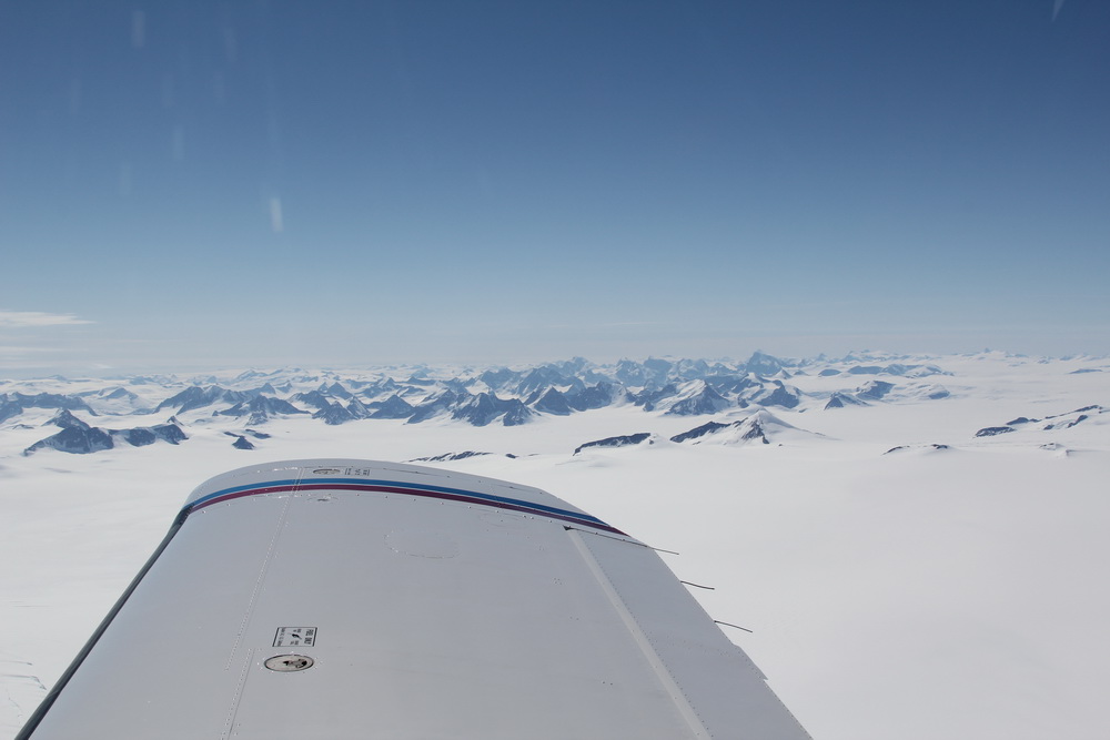 Мы шустренько порулили к полосе, взлетать надо было обратным курсом, то есть на встречу заходящей на посадку цессне, с другой стороны ВПП горы. После взлета мы правым разворотом и в наборе сразу ушли на маршрут. Цессна как раз зашла на посадку. Я сделал пару кадров аэродрома и приготовился глазеть по сторонам. Диспетчер предложил занять 13000, ага , с полной загрузкой... Это вряд ли , по крайней мере будем карабкаться оооочень долго. 11000-12000 самолет еще набирает но выше? После 10500 он еле ползет вверх. Только успев набрать высоту , му подошли к леднику. Светило солнышко, настроение отличное, облаков нет, я включил отопитель и приготовился наслаждаться полетом. Ледник действительно был красив , это как раз те места, где не ступала нога человека. До восточного побережья около 170 км.