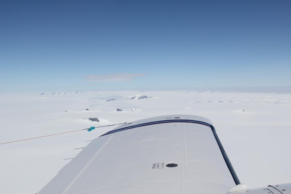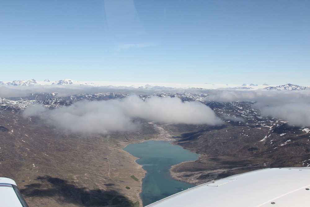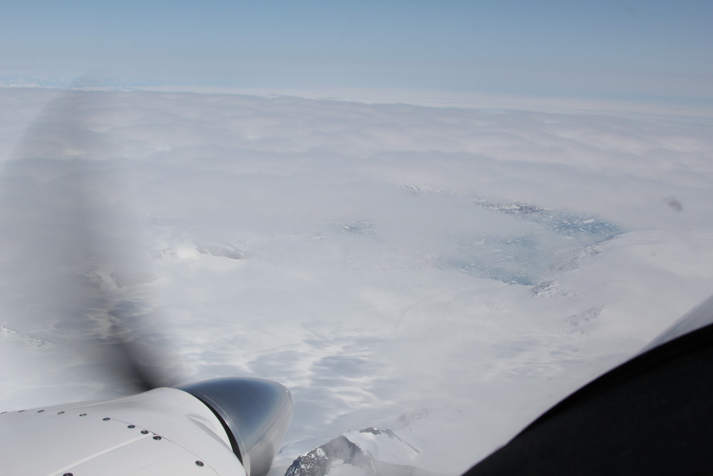 Мы шустренько порулили к полосе, взлетать надо было обратным курсом, то есть на встречу заходящей на посадку цессне, с другой стороны ВПП горы. После взлета мы правым разворотом и в наборе сразу ушли на маршрут. Цессна как раз зашла на посадку. Я сделал пару кадров аэродрома и приготовился глазеть по сторонам. Диспетчер предложил занять 13000, ага , с полной загрузкой... Это вряд ли , по крайней мере будем карабкаться оооочень долго. 11000-12000 самолет еще набирает но выше? После 10500 он еле ползет вверх. Только успев набрать высоту , му подошли к леднику. Светило солнышко, настроение отличное, облаков нет, я включил отопитель и приготовился наслаждаться полетом. Ледник действительно был красив , это как раз те места, где не ступала нога человека. До восточного побережья около 170 км.