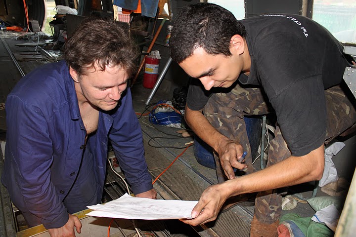 Получив столь долгожданные насосы мы без промедления решили восстановить систему правого мотора. Собравшись вечером, после работы в четверг, полны энтузиазмом мы включились в работу. Олег очищал внутренние полости трубопроводов от отложений, Миша и Юра начали собирать насос. Денис, в это время, наладил работу штатной системы освещения в мотогондолах.