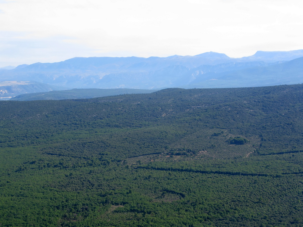 Вдали на вершинах местами виден снег. Именно там народ на лыжах зимой и катается. Я тоже хочу !