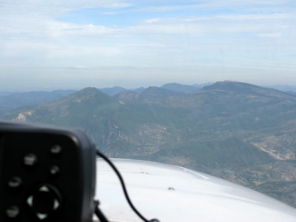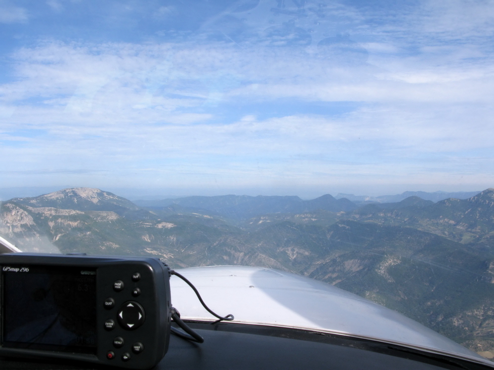 Под нами живописная бухта, просто напичканная всяким водоплавающим железом и пластиком, мы потихоньку жужжим над этим всем по схеме выхода. В эфире обмен умеренный, рано еще, народ еще не разлетался.... Вышка уточняет нашу высоту и переводит нас на Ниццу. Там сегодня мужчина диспетчерит, разрешает нам набирать 2500 футов, мы просимся выше, он не разрешает, говорит, вне зоны моего управления будете набирать, а пока нихт. Быстро заканчивается контролируемый сектор, Ницца с нами прощается и говорит, если надо - переключайтесь на частоту Марселя. Нам нафиг не надо, поэтому частоту переключаем, но в эфир выходить не выходим, нами никто не интересуется. Класс Жы, все нормально. Ползем себе вверх, чтобы перевалить горные вершины. Сегодня погода уже не такая, что ни облачка, высоко наверху видны стратосферники, верный признак приближающегося циклона.....летим в ту сторону, эх что-то нас впереди ждет....