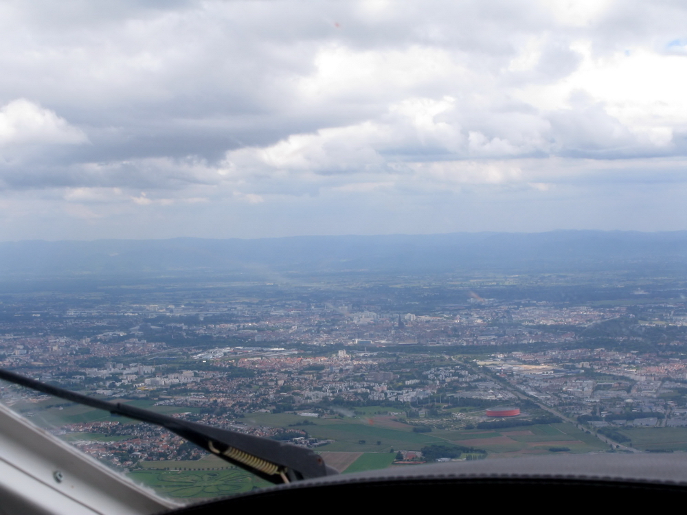 40 минут полета пролетели совершенно незаметно за решением несложных навигационных задач и просто в разговорах, нас переводят на подход Страсбурга, который сразу говорит, что сейчас будет нас векторить. Ну так даже проще, диспетчер задает курса, мы следуем указаниям, кому-то он еще дает указания по заходу, но не в Страсбург, а какой-то другой порт. Прослушиваем АТИС и узнаем из него, что где-то тут летают планеры, а полоса будет не та, на которую мы (многократно !) заходили и садились позавчера. Про облачность информация тоже радует - сейчас должно быть ее совсем немного.