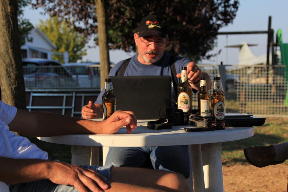 Сразу после взлета меня передали Падова инф и вели по точкам вдоль берега , потом успокоились и последнее указание было , - доложить визуальный контакт в Луго. Через минут тридцать я уже подошел к аэродрому, пристроился ему в "хвост" и запросился " с проходом" , в надежде получить от Миша+Володя пару хороших снимков... Заходя на второй круг я услышал в эфире скрипучий голос : что-то там... хеликоптер 44, Луго, давайте посадку, несите пиво...